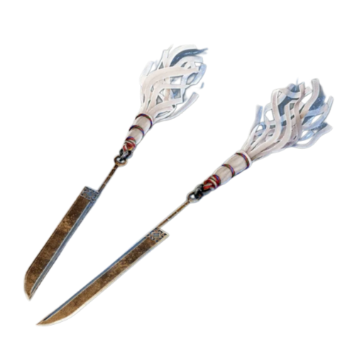 A blade crafted by a bladesmith traumatized by the fall of Dalamud. The dagger is said to never fully be able to be destroyed and certainly many have tried.This is a cursed weapon that connects itself mentally with the user when attuned, often granting the user vision of the end -- sometimes helpful, other times displayed as a paranoid vision. When used as a melee weapon this dagger operates as any normal blade would; however, when thrown this dagger explodes in a rapture of red shards that dig into an enemy.The dagger reforms back in the users hand after each explosion, seemingly attached to the user.