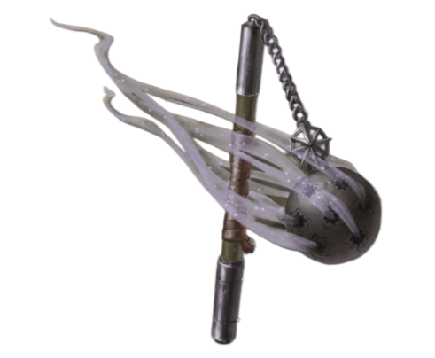 This mace has a constantly smolder and smoking striking head. Supposedly there is a constantly burning dragon's heart within the head of the weapon.This flail acts as a normal blunt weapon with one exception: it has the ability to absorb fire aether and spells. When struck with a fire spell the flail can absorb it and send it back at the attacker on the next swing of the flail.